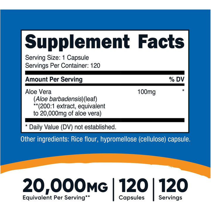 Aloe Vera 20000 Mg 120 Cápsulas Extracto Vegetariano Libre De Gluten