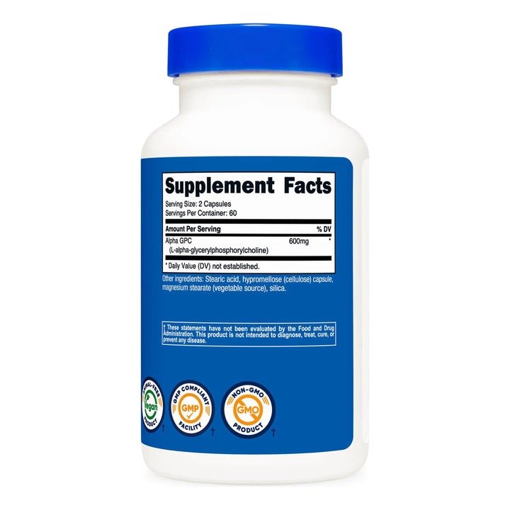 La colina es un nutriente esencial que muchos ignoran, pero tu cerebro la necesita para funcionar al máximo. Con Alpha GPC, obtienes una forma pura y altamente biodisponible de este compuesto, respaldada por pruebas de calidad y fabricación en instalaciones reguladas por la FDA. ¿Por qué conformarte con menos cuando puedes tener lo mejor?