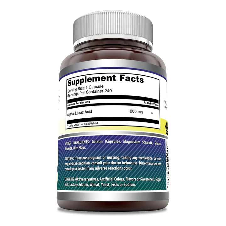 Amazing Formulas Ácido Alfa Lipoico 200 Mg 240 Cápsulas Antioxidante Sin Gluten