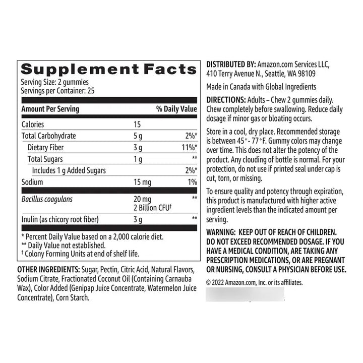 Amazon Solimo Gomas Prebióticas Probioticas 2 Billones CFU Fácil Uso