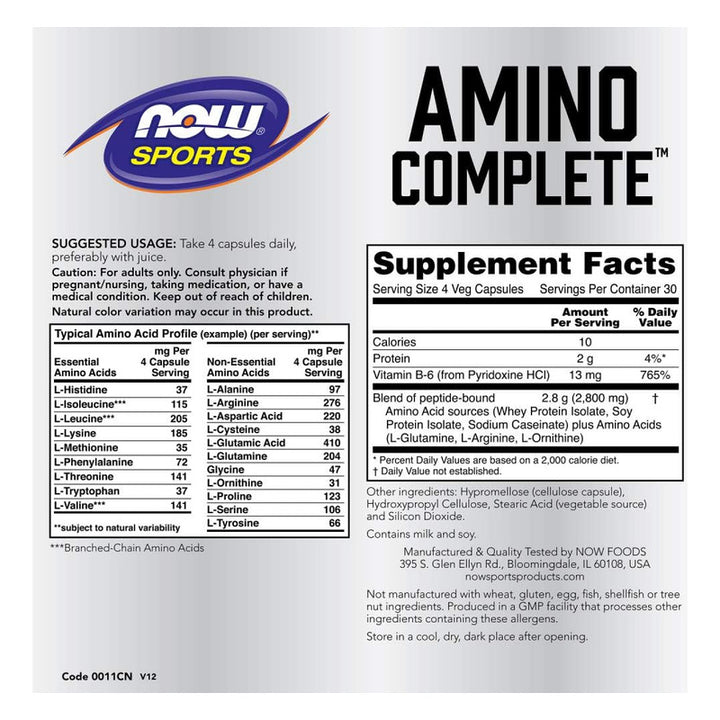 Amino Complete Con Vitamina B6 120 Cápsulas Now Sports Para Energía