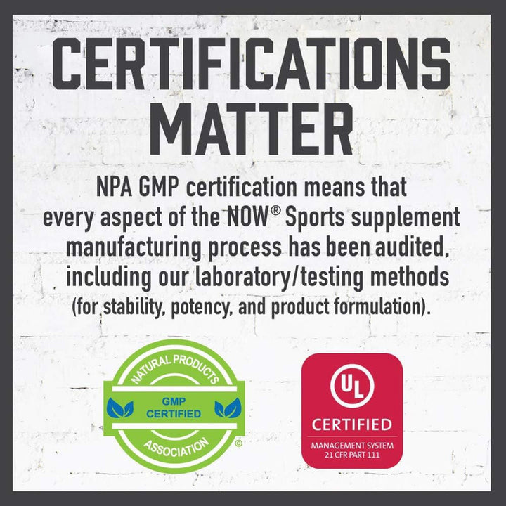 ¿Te imaginas cumplir tus objetivos con la certeza de que estás utilizando un suplemento seguro? Con el sello Informed-Sport, garantizamos que este producto ha sido verificado para evitar cualquier sustancia prohibida, asegurando tu integridad y éxito en cada competencia. Además, el compromiso de Now Sports con la calidad se refleja en su certificación GMP, indicando que se han controlado cada uno de los aspectos durante el proceso de fabricación.