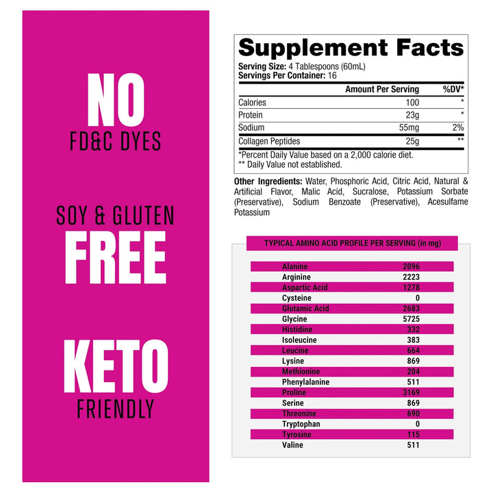 Imagina despertar cada mañana con una piel más firme e hidratada, mientras tus músculos se recuperan más rápido después de cada sesión de ejercicio. Con solo 0.81 oz por porción, este colágeno líquido no solo es conveniente, sino que también está libre de azúcar, carbohidratos y gluten, haciéndolo ideal para dietas paleo y cetogénicas. ¿Por qué conformarte con menos cuando puedes tener lo mejor?