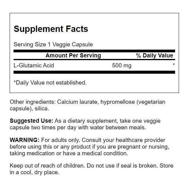 Aminoacido Acido Glutamico 500 Mg 60 Capsulas Vegetales Salud Cognitiva