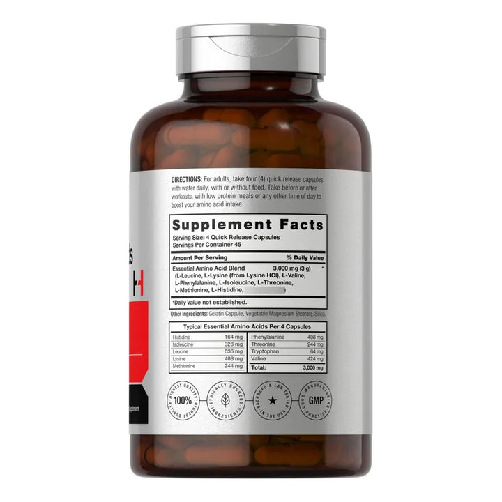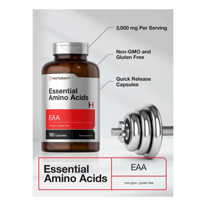 Aminoácidos Esenciales 180 Cápsulas Liberación Rápida Sin Gluten