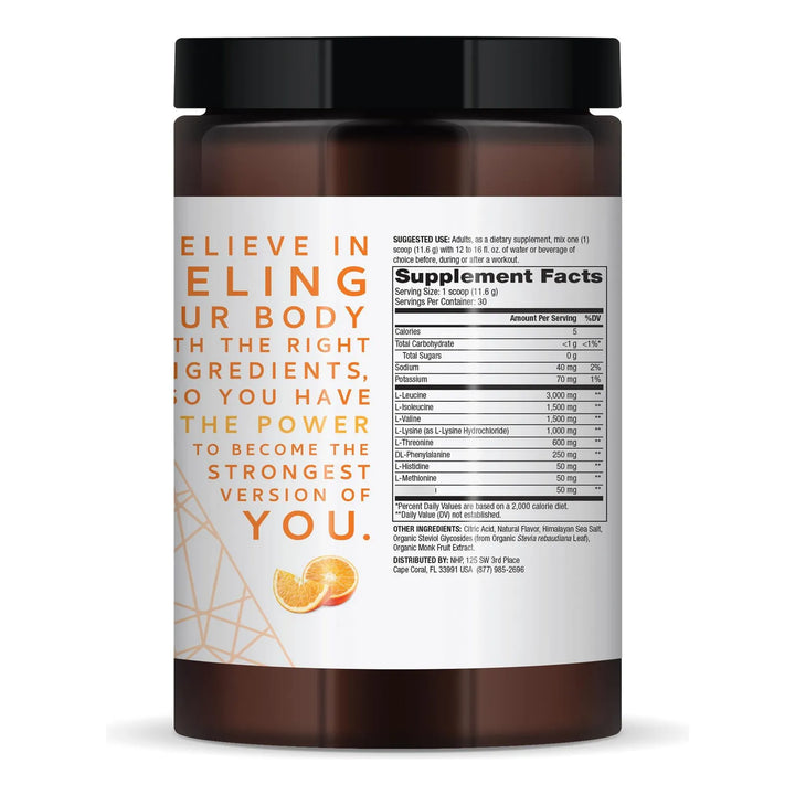 Cada porción de este poderoso suplemento está cargada con los nueve aminoácidos esenciales, incluyendo los tres BCAA clave: leucina, isoleucina y valina. Estos componentes trabajan juntos para promover la síntesis de proteínas, reducir la fatiga y ayudarte a alcanzar tus metas físicas más rápido que nunca. ¿Lo mejor? Su delicioso sabor a naranja hace que cada dosis sea un momento placentero.