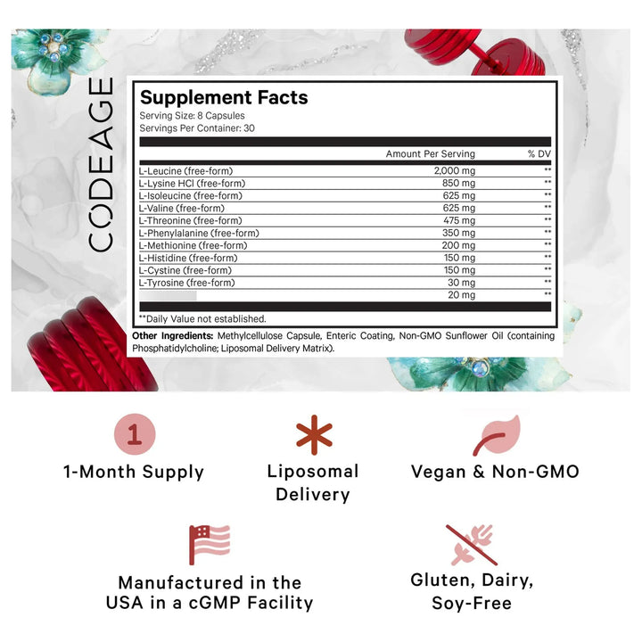 La tecnología liposomal en estas pastillas asegura que cada aminoácido sea absorbido eficientemente por tu organismo. No es magia, es innovación: el complejo fosfolípido derivado de aceite de girasol sin OMG protege los nutrientes hasta que llegan exactamente donde los necesitas. Leucina, valina, isoleucina (los famosos BCAA) trabajan junto a otros 6 aminoácidos esenciales para optimizar tu síntesis proteica, reducir el catabolismo muscular y acelerar la reparación tisular.