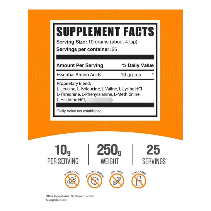Aminoácidos Esenciales En Polvo 250G Suplemento Sin Sabor Para Aliado Fitness
