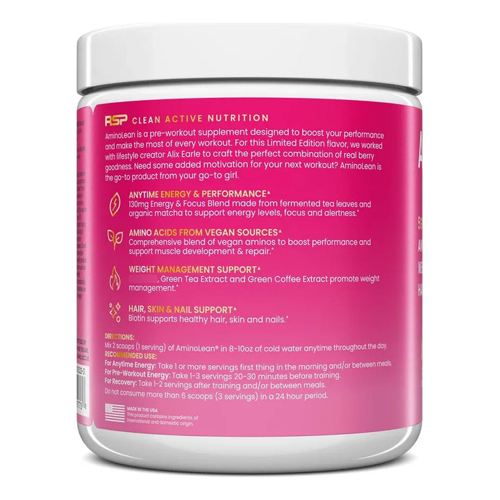 AminoLean Pre Entrenamiento Energía Limpia Con Biotina Elixir De Bayas 30 Porciones