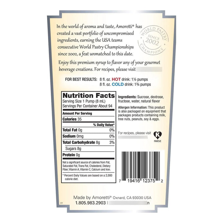 Amoretti Jarabe Premium Café Expreso 750 Ml Sabor Natural Sin Conservantes