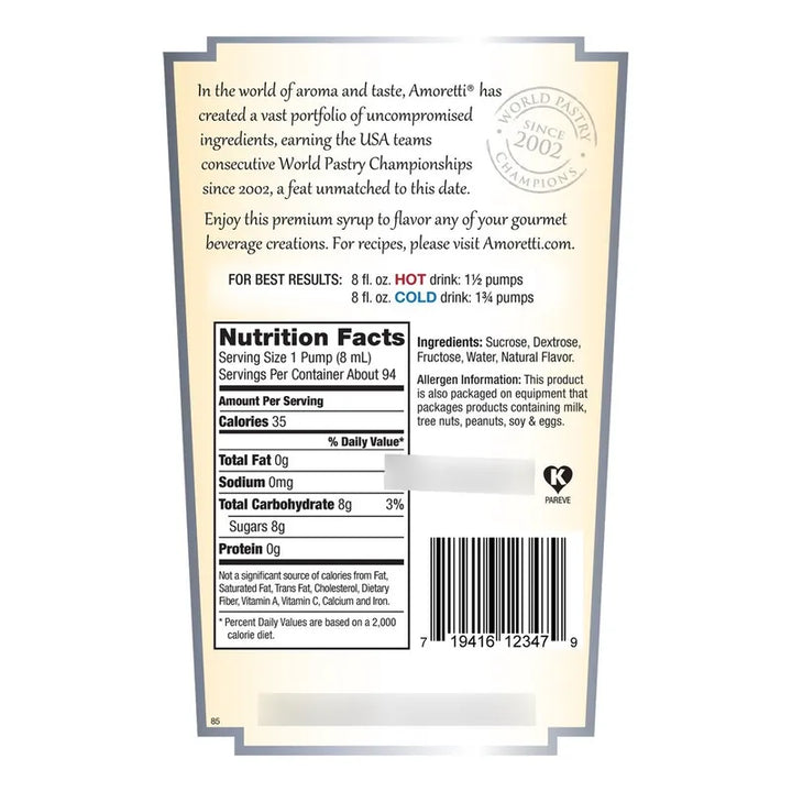 El secreto detrás de cada deliciosa gota de Amoretti Jarabe radica en la selección de ingredientes naturales de alta calidad. Cada porción está diseñada para potenciar el sabor de tus bebidas sin mascarar, permitiéndote disfrutar de una experiencia auténtica y pura.