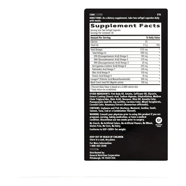 Este complejo ultraconcentrado combina lo mejor de los omegas de pescado y plantas, diseñado para quienes buscan resultados reales. Con 1725 mg de omegas totales y 1100 mg de omega-3 por dosis, cada cápsula es un paso hacia una vida más saludable y activa. ¿Por qué conformarte con menos cuando puedes darle a tu cuerpo lo que realmente merece?