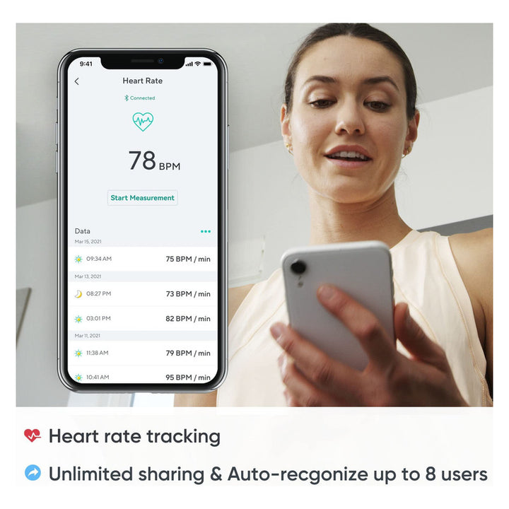 Con nuestra báscula inteligente, no solo medirá su peso, también le proporcionamos 12 métricas esenciales de composición corporal que cambian la forma en que percibe su salud. 🩺 ¿Qué tal saber su frecuencia cardíaca, porcentaje de grasa corporal y más desde la comodidad de su hogar? 🏠