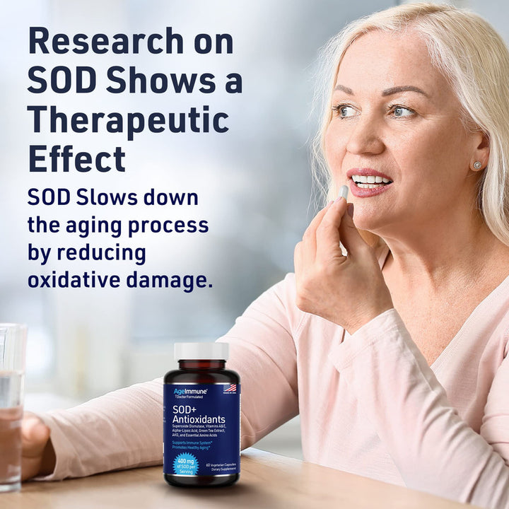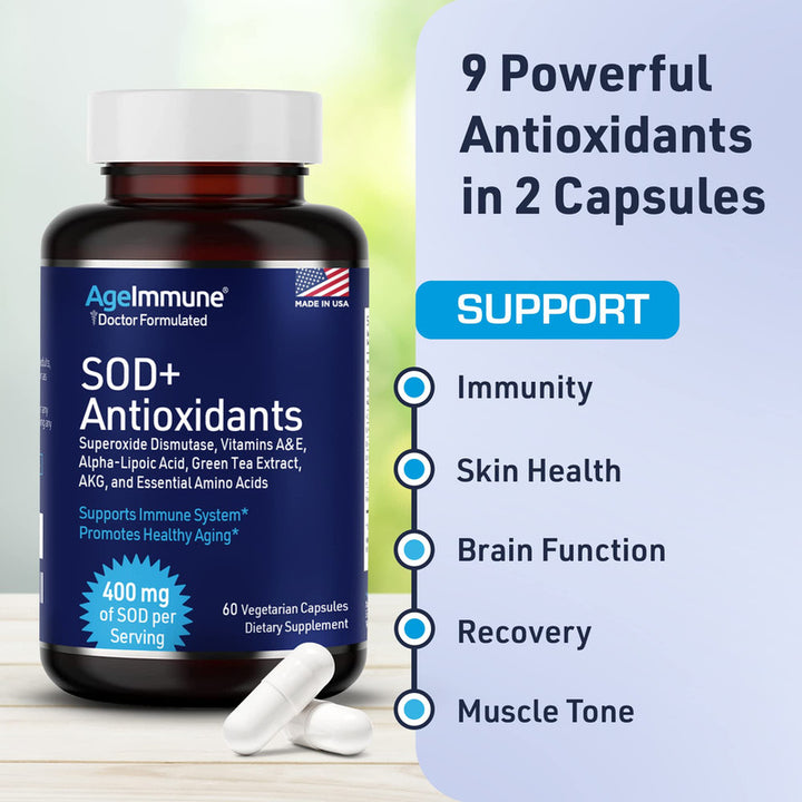 La fórmula única de Antioxidantes SOD Complejo no solo ralentiza el proceso de envejecimiento, sino que también mejora tu sistema inmunológico con una combinación exclusiva de ingredientes excepcionales como el ácido alfa lipoico, L-lisina, L-ornitina y alfacetoglutarato, junto con extracto de té verde y vitaminas esenciales.