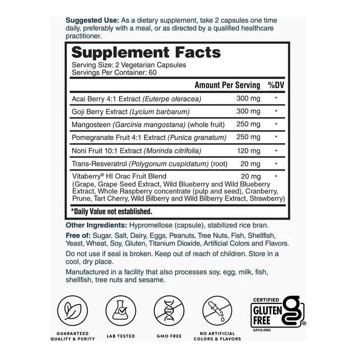 Antioxidantes Superiores Resveratrol Acai Bayas De Goji 120 Cápsulas