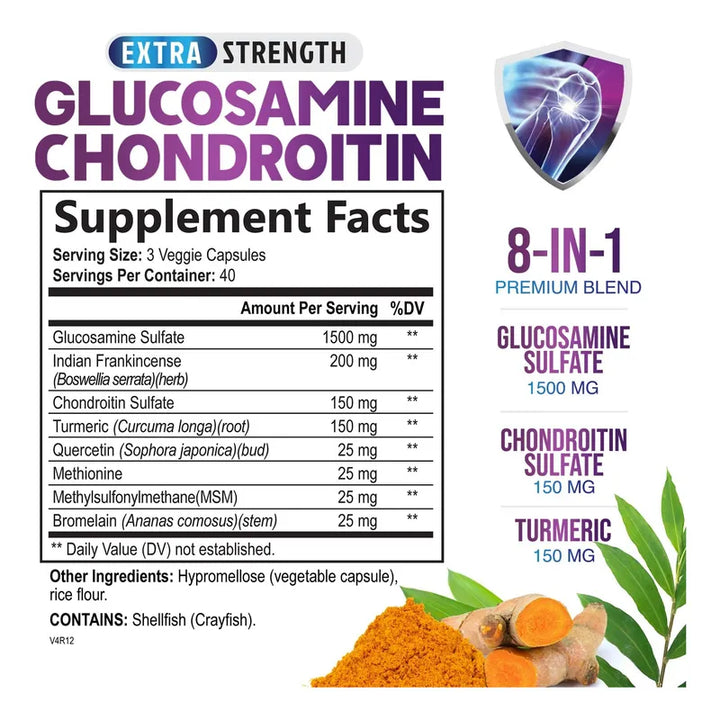 Imagina una solución que no solo mejora tu movilidad, sino que también cuida de ti en todos los sentidos. Esta potente combinación de glucosamina, condroitina, MSM, cúrcuma y boswellia está diseñada para ofrecer un apoyo integral a tus articulaciones, huesos y movilidad en general. Aprovecha los múltiples beneficios de ingredientes naturales de probada eficacia.