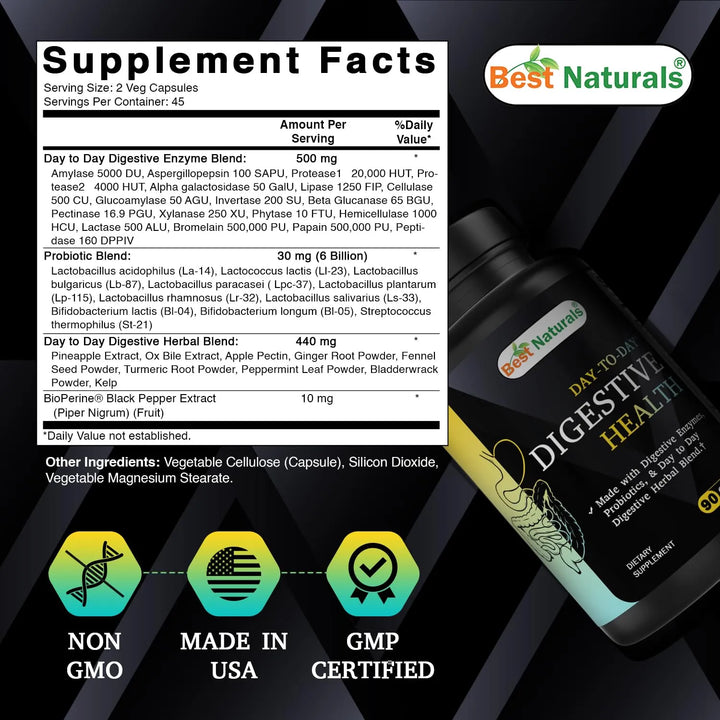 Apoyo Digestivo Diario 90 Cápsulas Vegetales Con Enzimas Probióticos Y Hierbas