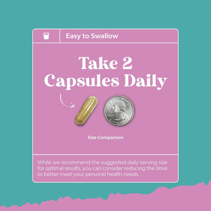- Toma dos cápsulas al día 20-30 minutos antes de una comida.