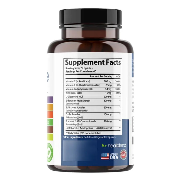 Este suplemento utiliza una fórmula única que combina saúco, cúrcuma, equinácea y jengibre, conocidos por sus potentes propiedades antioxidantes. Estos ingredientes trabajan en conjunto para reducir el estrés oxidativo y combatir los radicales libres, asegurando que tu salud no se vea mermada por agentes externos.