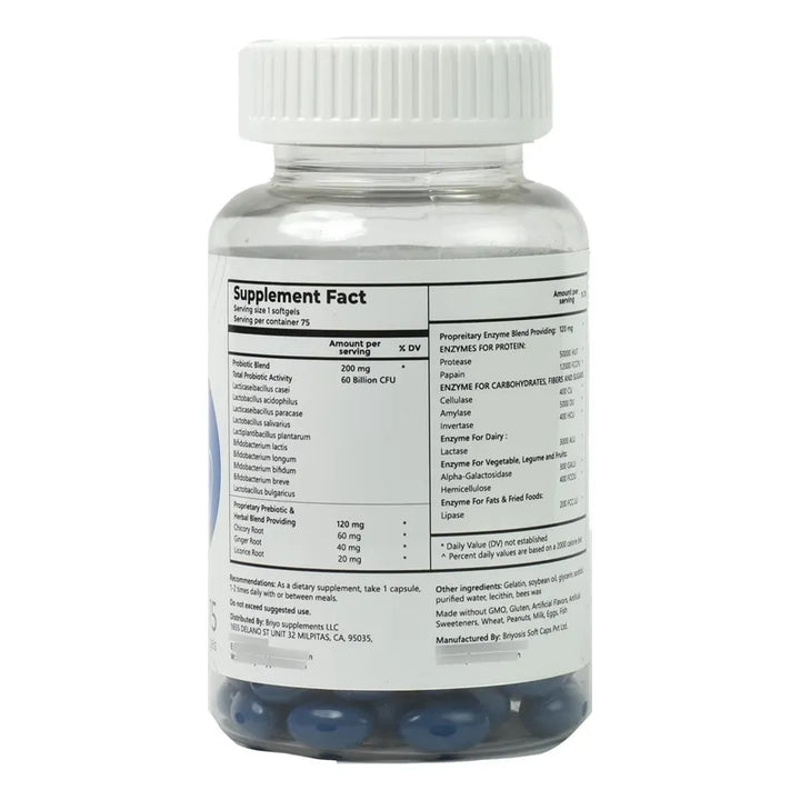 Imagina una vida donde tus comidas no sean acompañadas por malestar o pesadez. Con cada cápsula, estás entregando a tu cuerpo una poderosa dosis de bacterias beneficiosas, que además están potenciadas por enzimas digestivas para una óptima absorción de nutrientes. Experimenta una digestión más ligera y placentera.