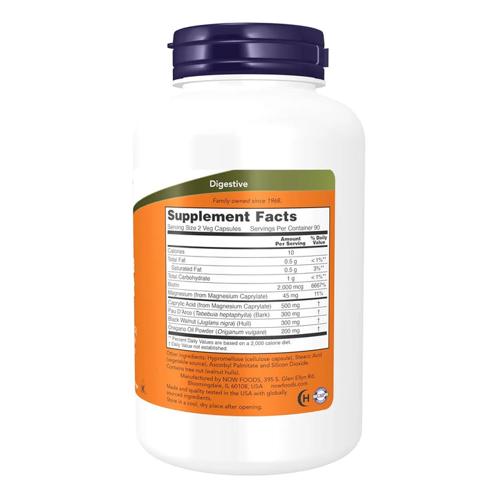 Imagina despertar cada mañana con una sensación de ligereza, sabiendo que tu flora intestinal está protegida por ingredientes 100% naturales. Este suplemento está diseñado para quienes buscan una solución real, sin químicos agresivos ni promesas vacías. Con una combinación única de Pau D'Arco, aceite de orégano, nogal negro y ácido caprílico, cada cápsula es un paso hacia una salud intestinal óptima.