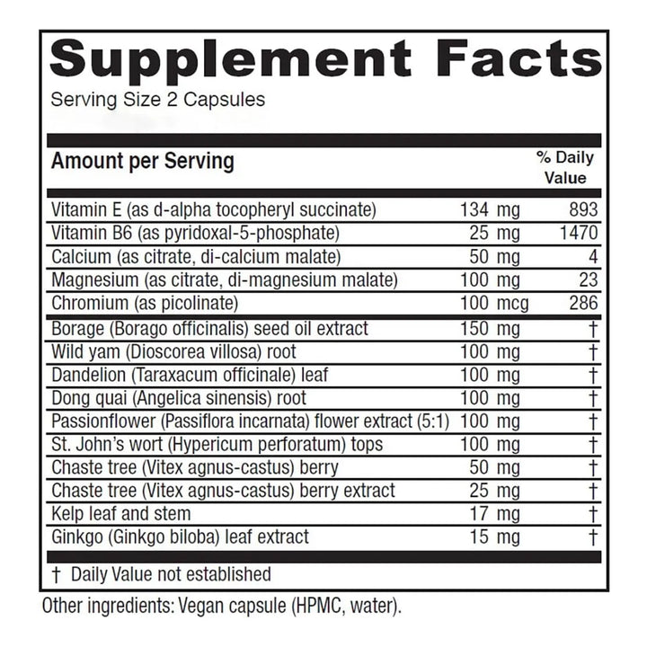 Formulado por el reconocido Dr. Tori Hudson, este complejo vegano de 120 cápsulas combina nutrientes esenciales y hierbas clínicamente estudiadas para abordar los síntomas premenstruales desde la raíz. La vitamina B6 y el magnesio trabajan en sinergia para reducir la hinchazón y la irritabilidad, mientras que la baya del árbol casto y el dong quai equilibran tus hormonas de manera natural. Cada ingrediente ha sido seleccionado por su eficacia comprobada, ofreciéndote un ciclo menstrual más regular y menos doloroso.