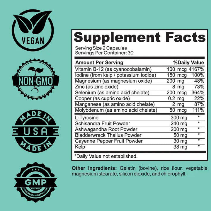 - Ingredientes de alta calidad: Confía en una fórmula que proporciona todo lo que tu tiroides necesita.