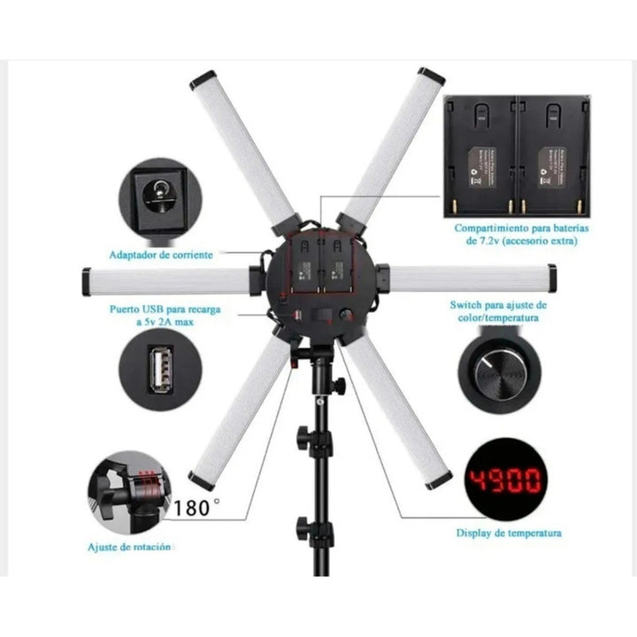 Aro De Luz Led 65cm Estrella 6 Tubos Iluminación Fotografía Profesional