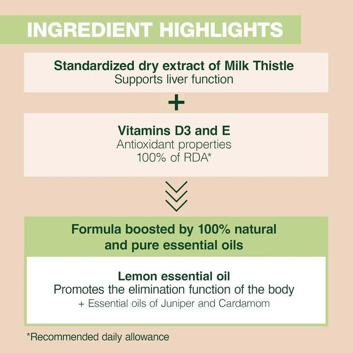 Este suplemento actúa en tres fases para maximizar sus beneficios. Primero, los extractos de cardo mariano y el zinc trabajan para neutralizar toxinas en tu hígado. Luego, el aceite esencial de limón estimula la eliminación de impurezas a través de los sistemas naturales de tu cuerpo. Finalmente, las vitaminas D3 y E ayudan a restaurar el equilibrio energético, dejándote con una sensación de bienestar duradero.