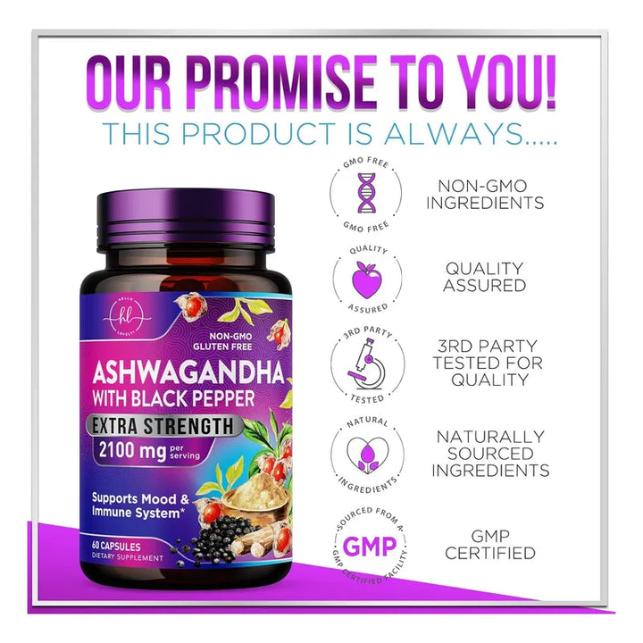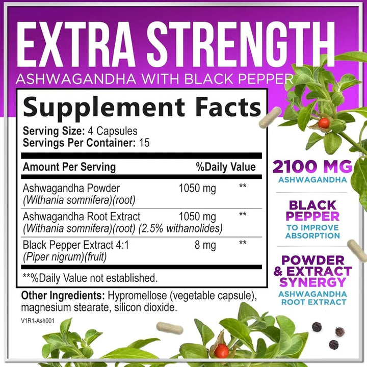 Ashwagandha 2100 Mg trabaja respaldando tus niveles de energía y reduciendo el impacto del estrés. Su combinación con pimienta negra mejora la biodisponibilidad, asegurando que cada dosis multiplique sus efectos positivos.