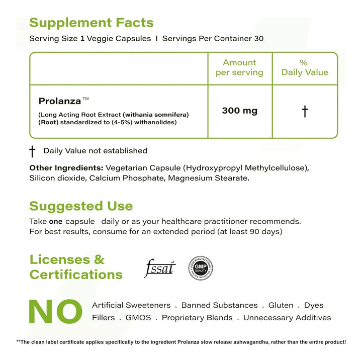 ¿Te sientes agotado mental y físicamente? La Ashwagandha ha sido utilizada durante siglos en la medicina ayurvédica por sus propiedades adaptogénicas, ayudando al cuerpo a manejar el estrés de manera más efectiva. Nuestra fórmula avanzada no solo contiene 300 mg de extracto puro de raíz, sino que también utiliza tecnología Prolanza® para liberar sus beneficios durante 12 horas continuas. Esto significa que una sola cápsula al día es suficiente para mantenerte equilibrado y enfocado, sin altibajos ni necesidad de múltiples dosis.