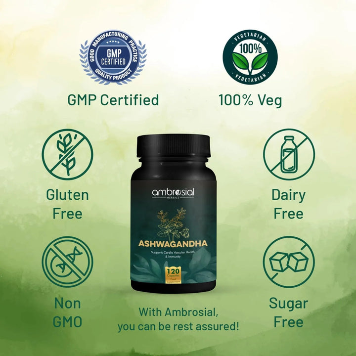 Ashwagandha 500mg 120 Cápsulas Suplemento Natural Para Energía Y Reducción De Estrés