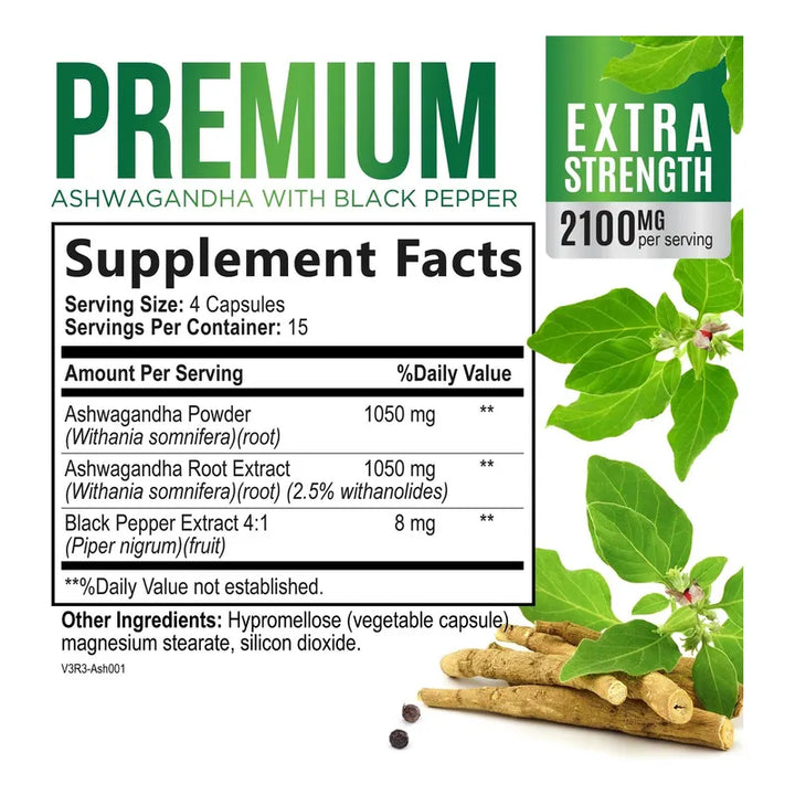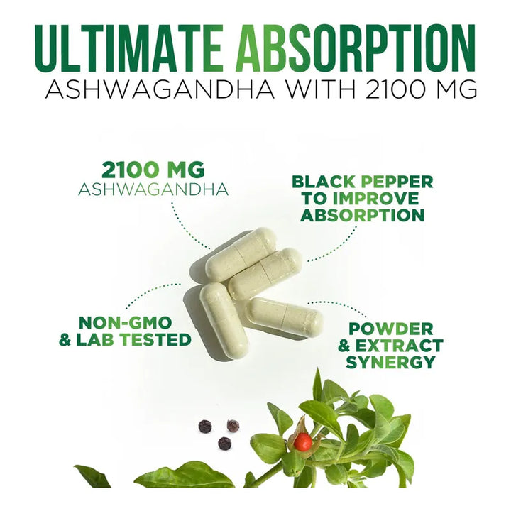 Ashwagandha Alta Potencia 2100 Mg Vegano Para Energía Intensa Y Apoyo Antioxidante