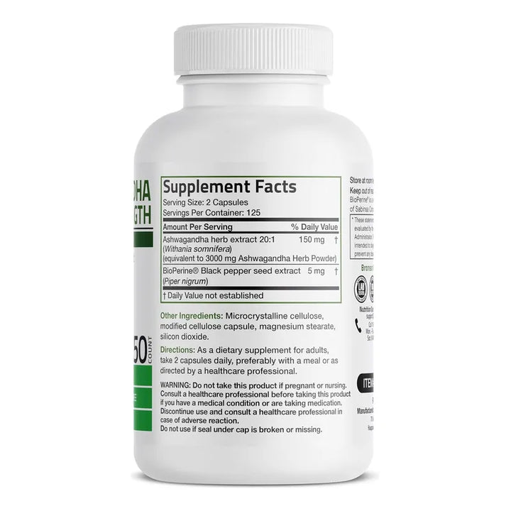 Ashwagandha De Bronson 250 Cápsulas Apoyo Para Estrés Con Bioperine