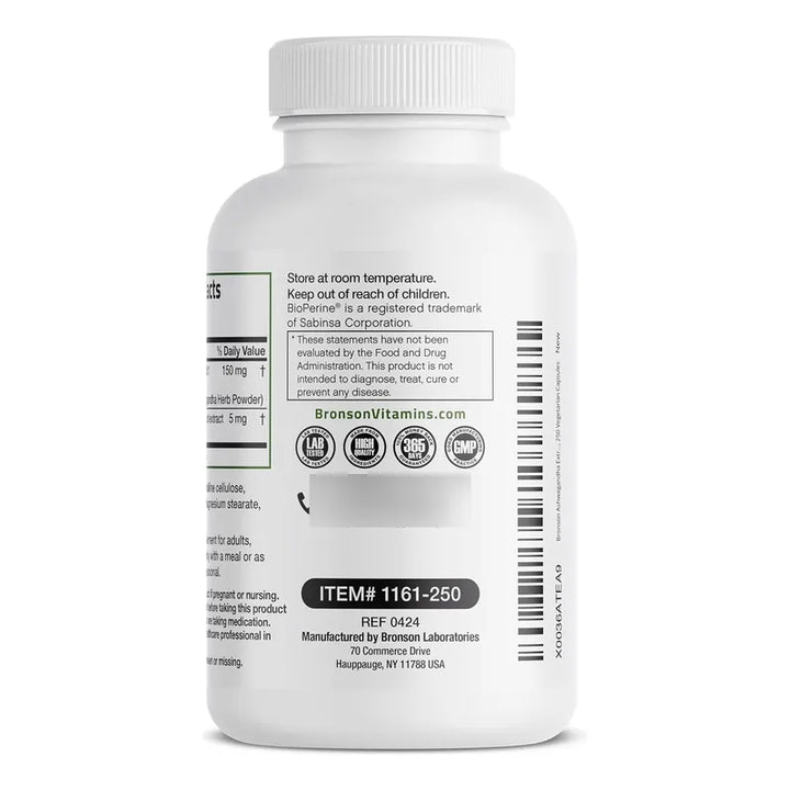 No simplemente desees menos estrés en tu vida, actúa para hacerlo posible. Con 250 cápsulas en cada frasco, tendrás un suministro generoso para acompañarte en tu camino hacia una vida más saludable y feliz. Toma acción hoy y experimenta la diferencia que Bronson puede hacer.