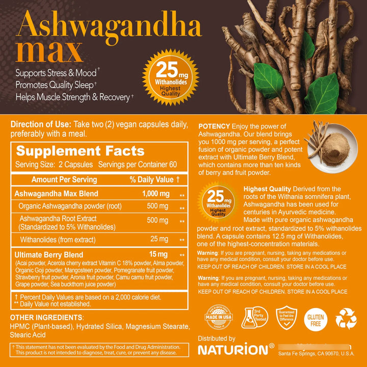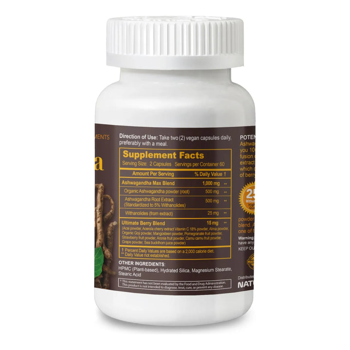- Fórmula con 5% de Withanolides, los compuestos activos más potentes de la Ashwagandha 🌟