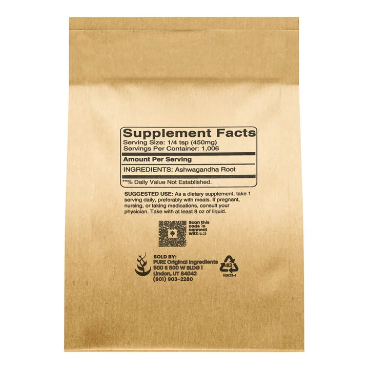 Ashwagandha Natural Puro 454 Gramos Vegana Sin Gluten