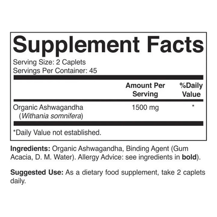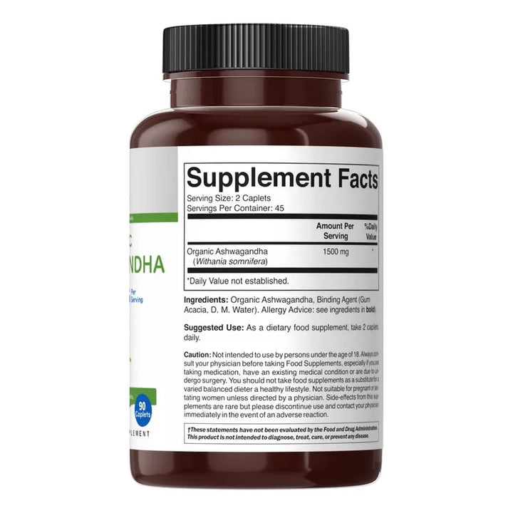 Ashwagandha Organica 1500 Mg 90 Tabletas Vegetariana Sin Gluten