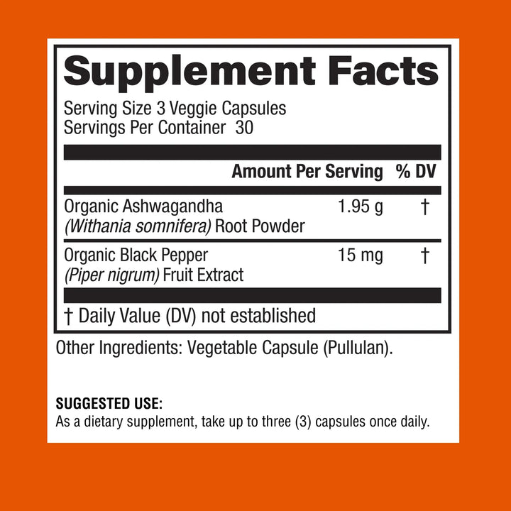 Ashwagandha Organica 1950 Mg Con Pimienta Negra 90 Capsulas Soporte Estres Y Energia