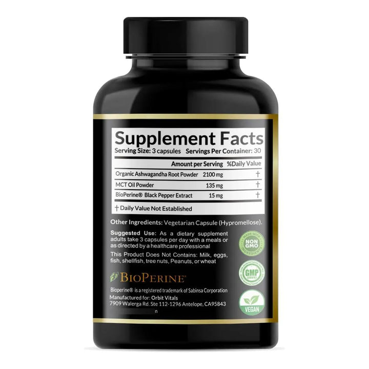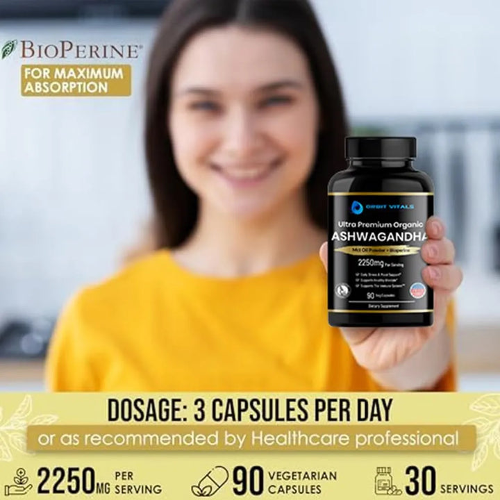 Ashwagandha Orgánica 2250 Mg Con Aceite MCT Y Pimienta Negra Para Absorción Superior