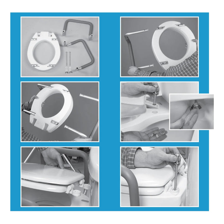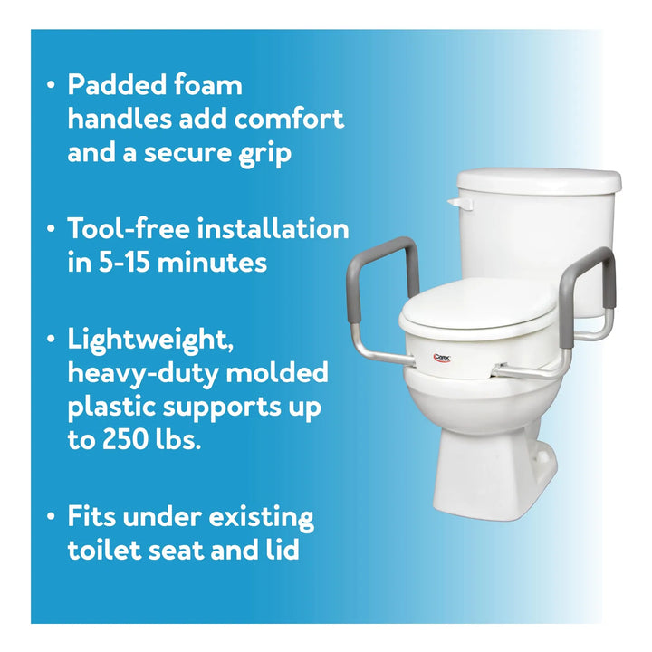 Asiento De Inodoro Elevado Con Brazos Acolchados Soporte 250 Libras Facil Instalacion