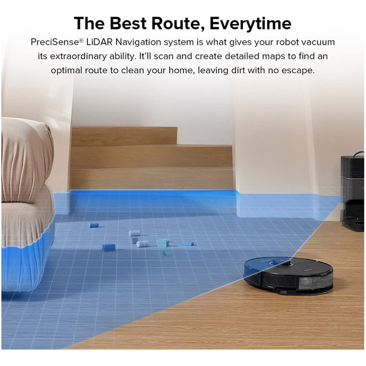 El Roborock S8+ utiliza un sistema de navegación avanzado que, combinado con sensores de luz y tecnología infrarroja, escanea el entorno para crear un mapa 3D detallado de su hogar. Esto le permite calcular rutas eficientes para limpiar todas las áreas, incluso en la oscuridad.
