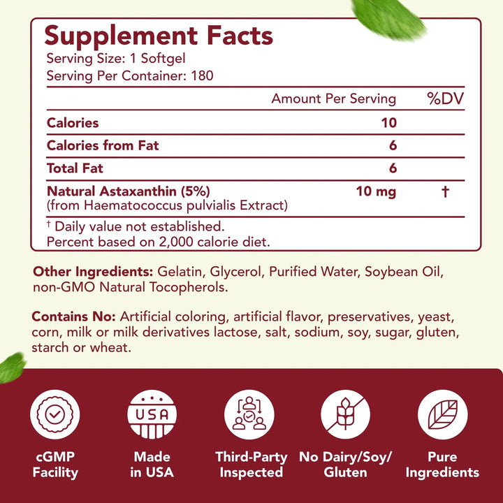 Astaxantina 10mg 180 Capsulas Antioxidante Poderoso Piel Y Vision