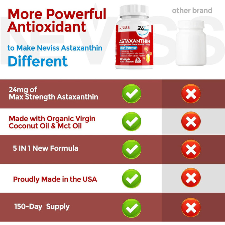 La Astaxantina de Neviss es segura y libre de aditivos innecesarios como soja, gluten y colores artificiales. Con cada cápsula, estás eligiendo cuidar de ti mismo con lo mejor que la naturaleza puede ofrecer.