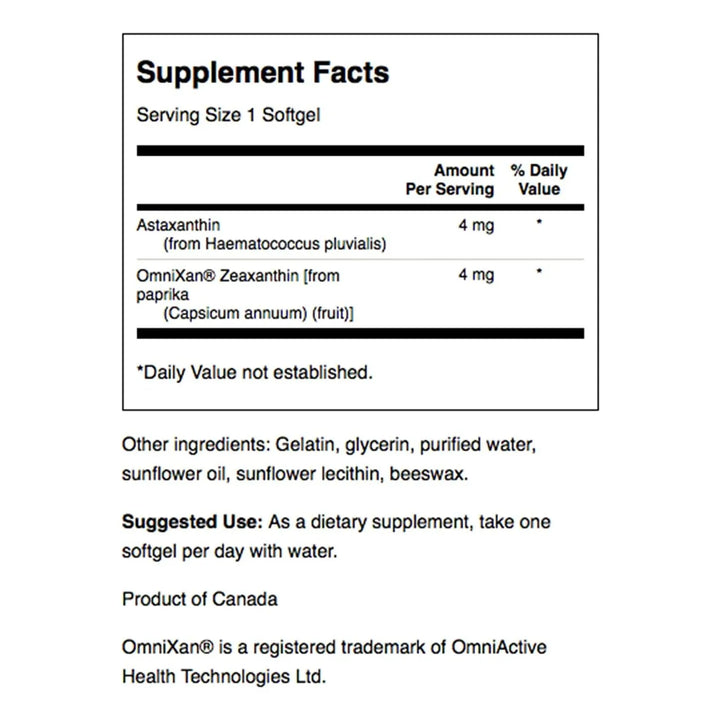 - Contiene 4 mg de Astaxantina y 4 mg de Zeaxantina OmniXan por cápsula 💊.
