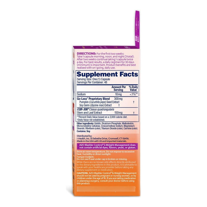 Azo Suplemento Control Vejiga Y Peso Con Go Less Y CQR-300 48 Caps