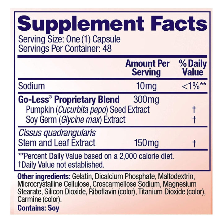 Nuestra fórmula está enriquecida con Go-Less®, una combinación poderosa de ingredientes naturales como semillas de calabaza y germen de soja, que trabajan activamente para fortalecer y relajar tu vejiga. Esto significa que puedes afrontar el día sin preocupaciones y disfrutar de un sueño reparador durante la noche.