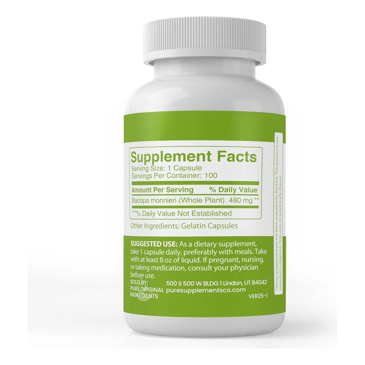 - Ingrediente Único: Cada cápsula contiene solo Bacopa Monnieri, sin mezclas que diluyan su efectividad 🌿