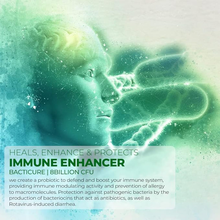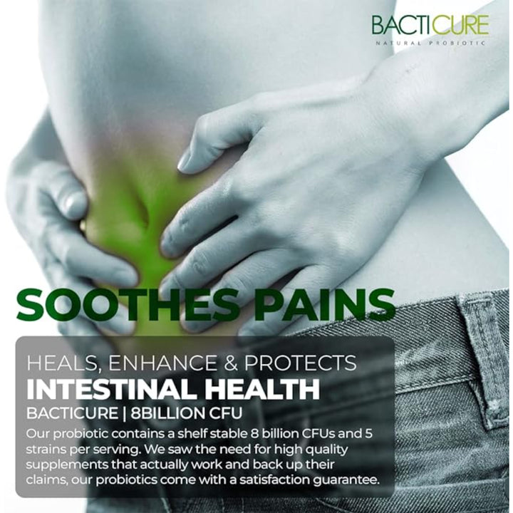 Bacticure actúa restaurando el equilibrio de tu microbiota intestinal. Las cinco colonias de probióticos actúan en sinergia para optimizar la digestión, mejorar la absorción de nutrientes y fortalecer tu sistema inmune.