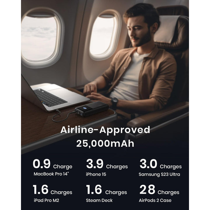 Aprovecha la capacidad de 25,000 mAh, ideal para largas jornadas de trabajo o viajes. Olvídate de estar buscando enchufes en el aeropuerto; lleva tu potencia contigo. ✈️